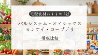 宅配食材はどれを選ぶべき?パルシステム・オイシックス・ヨシケイ・コープデリの料金や特徴を比較。子育て家庭に人気のサービスや失敗しない選び方を分かりやすく解説します。